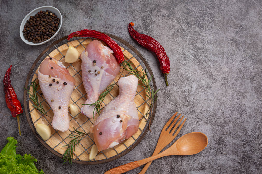 - 1 poulet entier coupé en morceaux