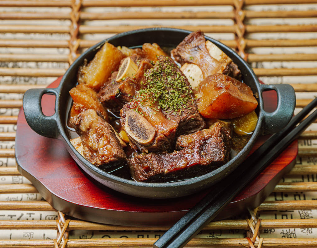 Le Galbijjim, souvent réservé pour des occasions spéciales, impressionne par sa tendreté et sa saveur riche grâce à sa sauce collante et légèrement sucrée.
